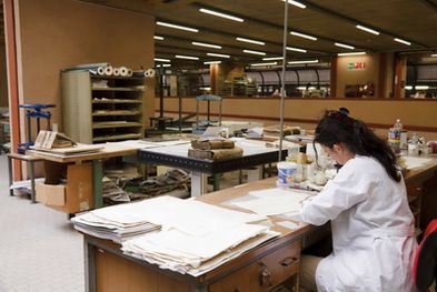 Il laboratorio si occupa del materiale documentario in consegna all’Archivio di Stato di Firenze con interventi di conservazione e restauro pianificati in base alla tipologia del danno e alle necessità di consultazione e valorizzazione, oltre a proseguire le operazioni di recupero della documentazione alluvionata anche attraverso la stesura di progetti di restauro da affidare a professionisti esterni. L’attività del servizio di conservazione è collegata ai programmi scientifici dell’Istituto rivolti al pubblico, offrendo supporto all’organizzazione di esposizioni, convegni e, soprattutto, ai lavori di riordinamento, inventariazione e digitalizzazione dei fondi archivistici. Oltre agli interventi di restauro, il personale del laboratorio cura tutte le attività di cartotecnica necessarie alla conservazione, al condizionamento e alla valorizzazione delle unità archivistiche, anche fornendo consulenza in fase di acquisto dei materiali specifici da parte dell’Istituto, di qualità adatta alla conservazione. Lo staff presta inoltre assistenza tecnica agli utenti della sala studio in fase di consultazione della documentazione, offrendo soluzioni adeguate per la manipolazione corretta dei documenti che necessitano di particolari cautele.