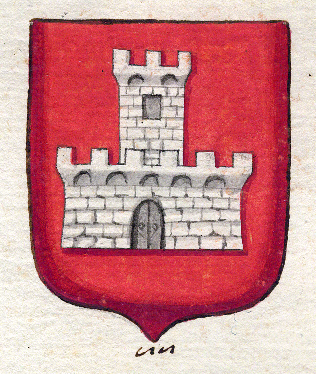 Di rosso, al castello turrito di un pezzo d'argento.