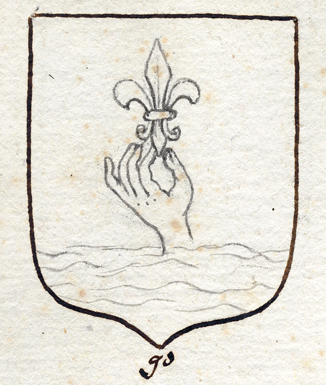 Di..., alla mano di... uscente dal mare di..., tenente fra il pollice e l'indice un giglio di....