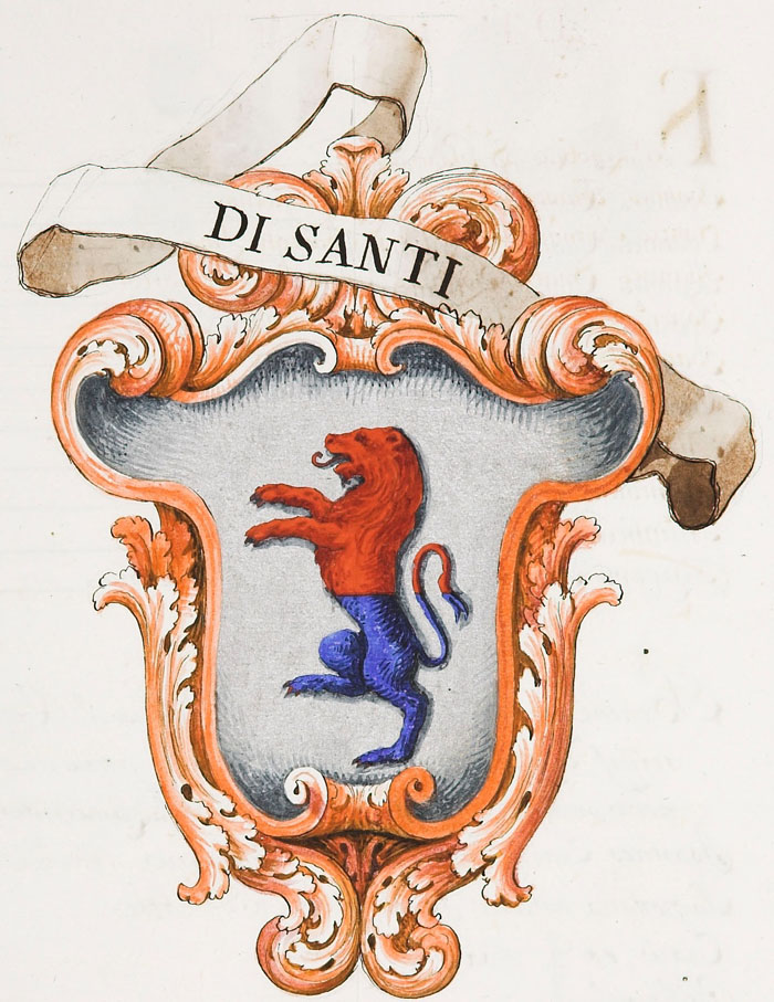 Si trova anche la forma «di Santi». Nel fascicolo è posto anche uno stemma d'argento, al leone di nero, lampassato e armato di rosso, attribuito a una famiglia «da Pozzolatico», altro denominazione della stessa famiglia.