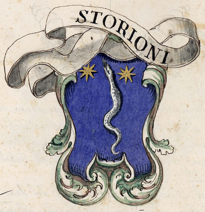 D'azzurro, alla biscia guizzante in palo d'argento, accompagnata da due stelle a otto punte d'oro, poste nei cantoni del capo.