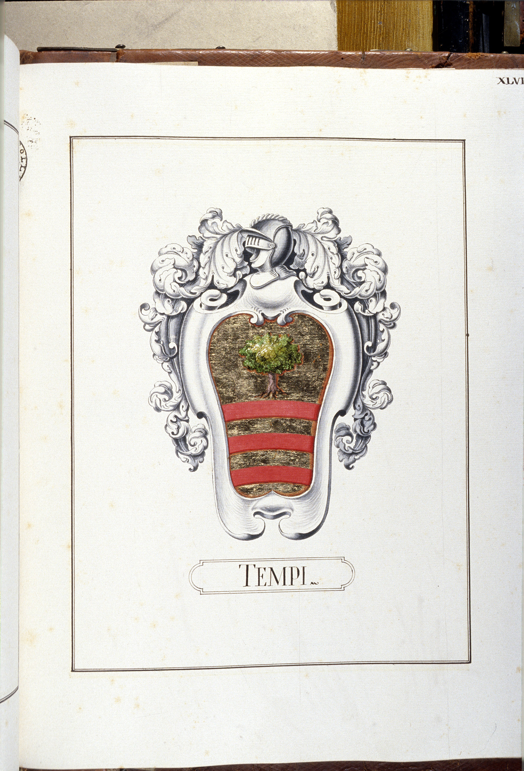 Troncato: nel 1° d'oro, all'albero sradicato al naturale movente dalla troncatura; nel 2° fasciato di sei pezzi di rosso e d'oro.